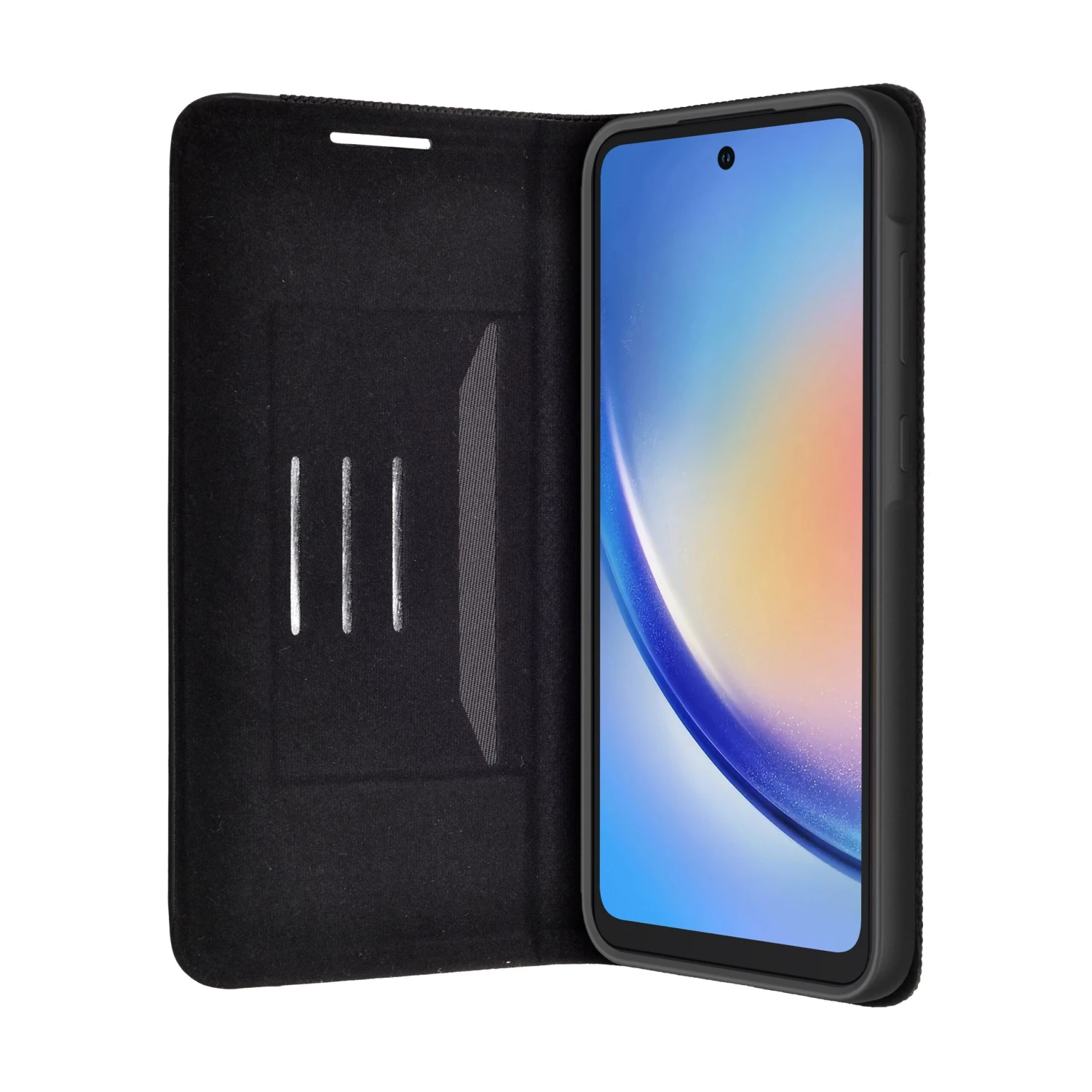 Classic All-In-One Design. Carry cards and cash with ease. Precise cutouts give you full access to ports and sensitive summary covers allow for responsive presses. Engineered with high-quality PU leather that holds your phone safely within the durable soft TPU full-body inner case providing dual-layered protection. Designed with a cushioned shockproof edge that ensures it against drops and bumps. Designed for Galaxy A35 .